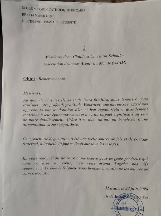 L'AJAM offre un repas aux élèves en juin 2025 à Maradi